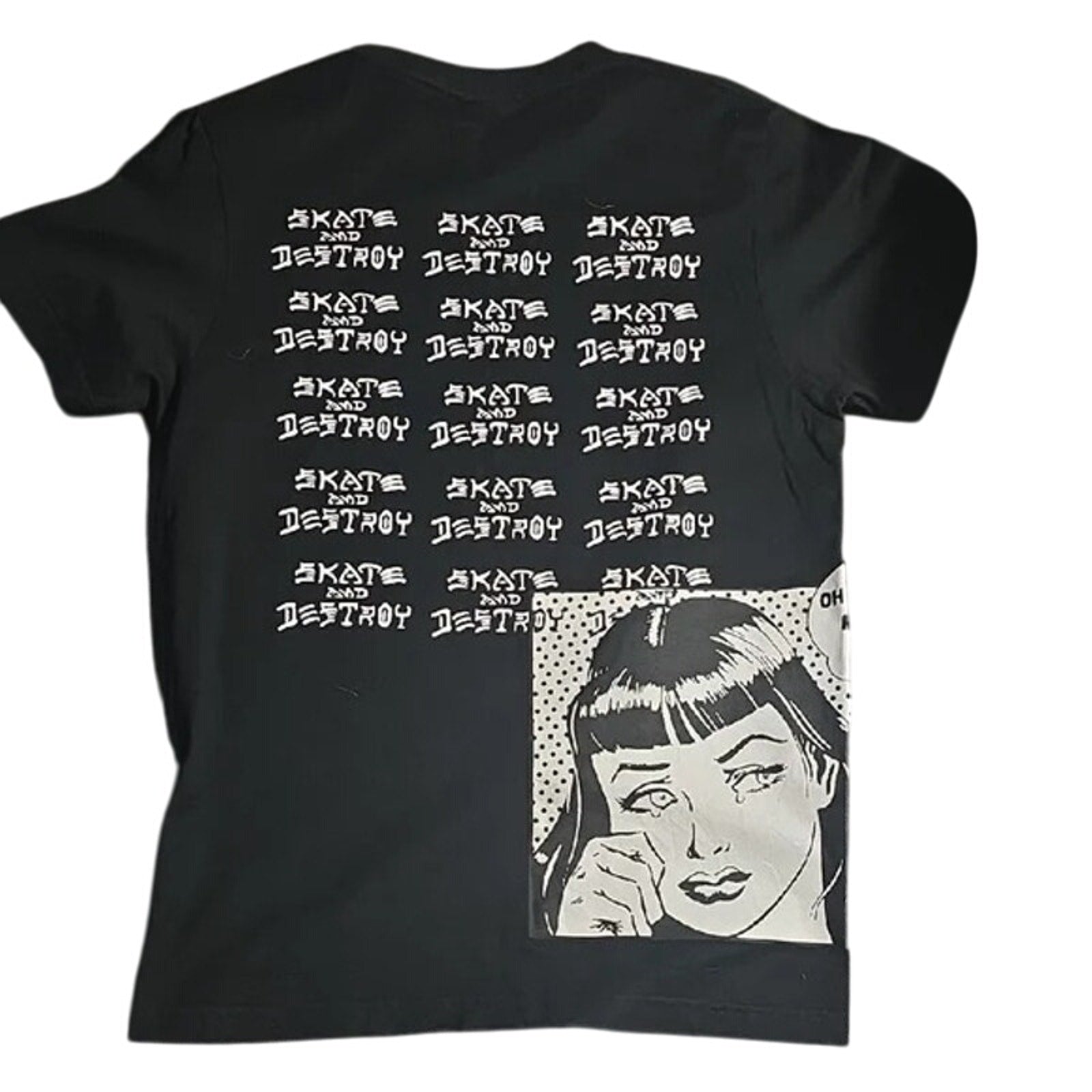 This Supreme short sleeve tee in black features a striking purple vertical text design, making it a standout piece in any wardrobe. Crafted from high-quality materials, it offers both comfort and style, perfect for casual outings. The bold graphic elements add a unique touch to this classic crew neck shirt